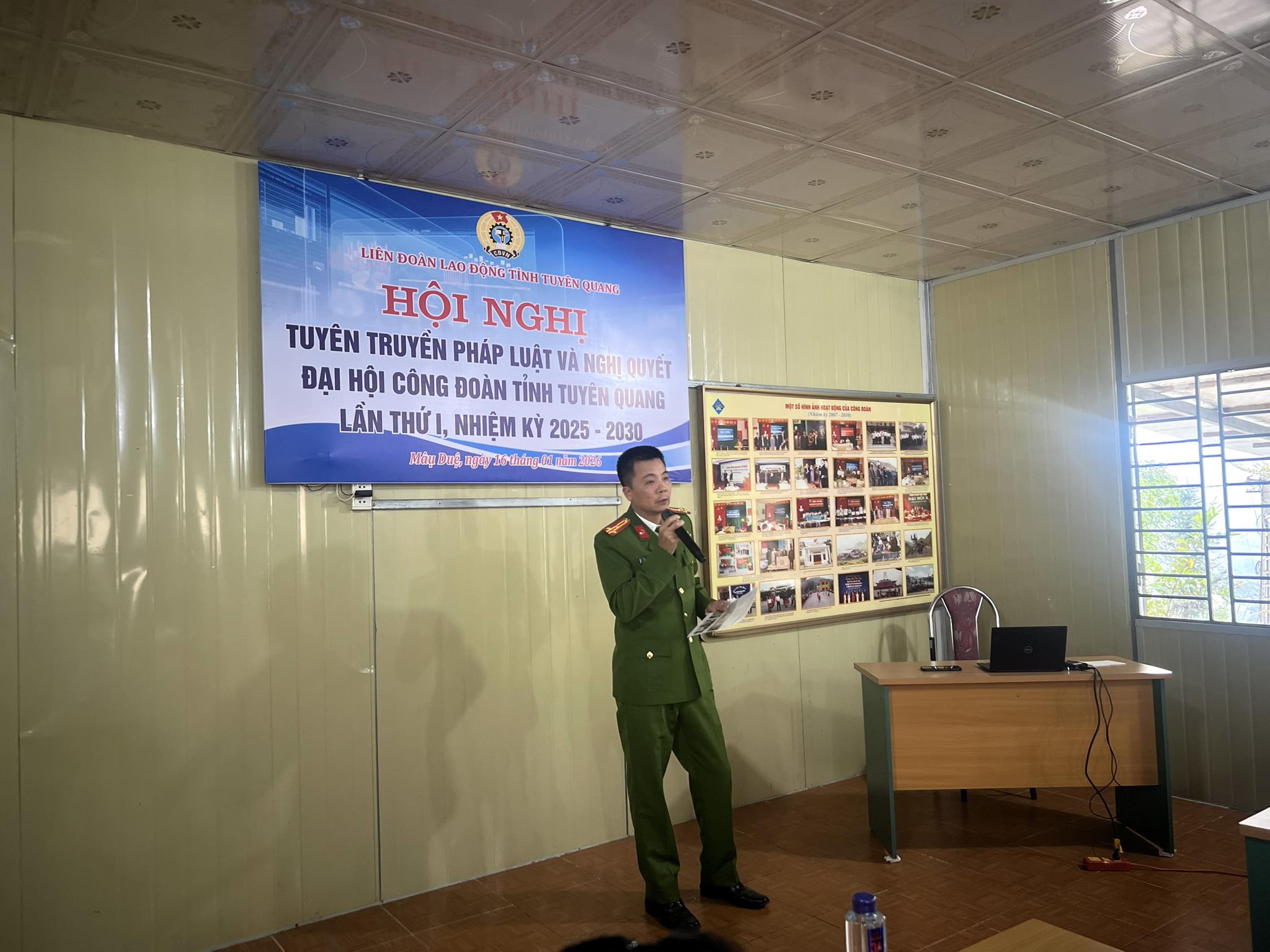 Đoàn viên, CNLĐ Công ty đã đc nghe các đồng chí Báo cáo viên đã tuyên truyền những nội dung cơ bản của pháp luật về phòng, chống tội phạm; Luật Phòng, chống ma túy; các quy định xử lý đối với hành vi tàng trữ, mua bán, sử dụng trái phép chất ma tuý và phổ biến nội dung Nghị quyết Đại hội Công đoàn tỉnh Tuyên Quang lần thứ I, nhiệm kỳ 2025–2030.