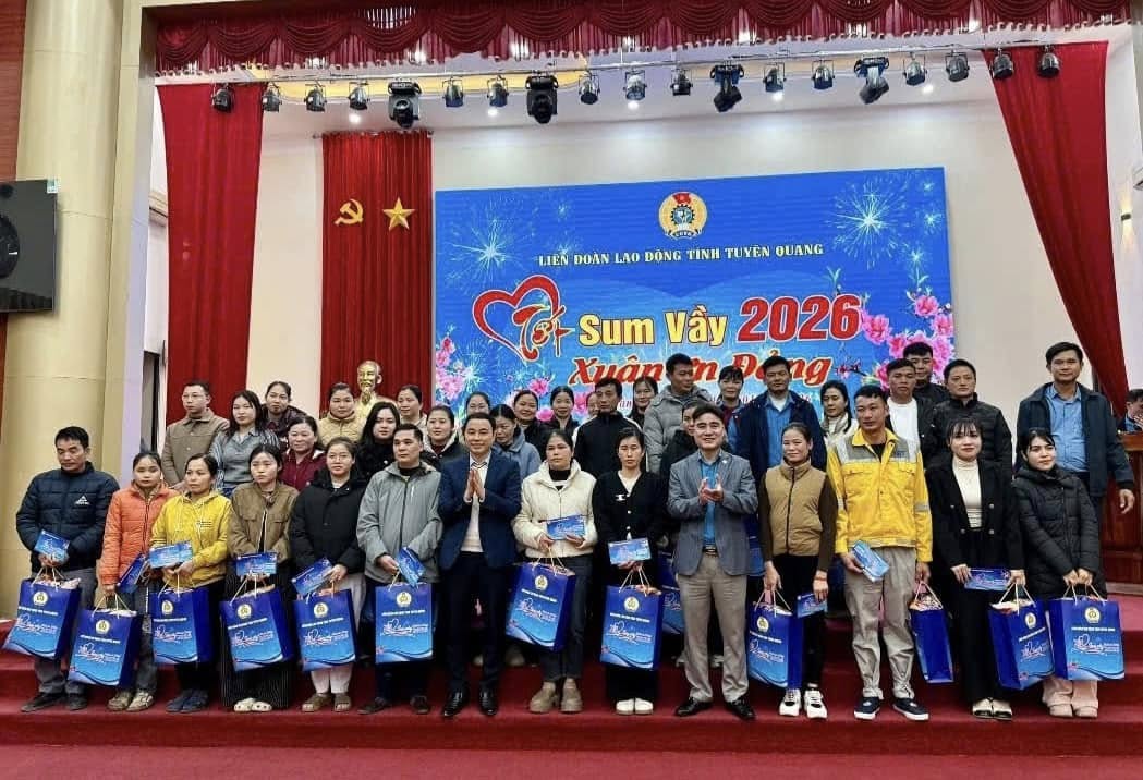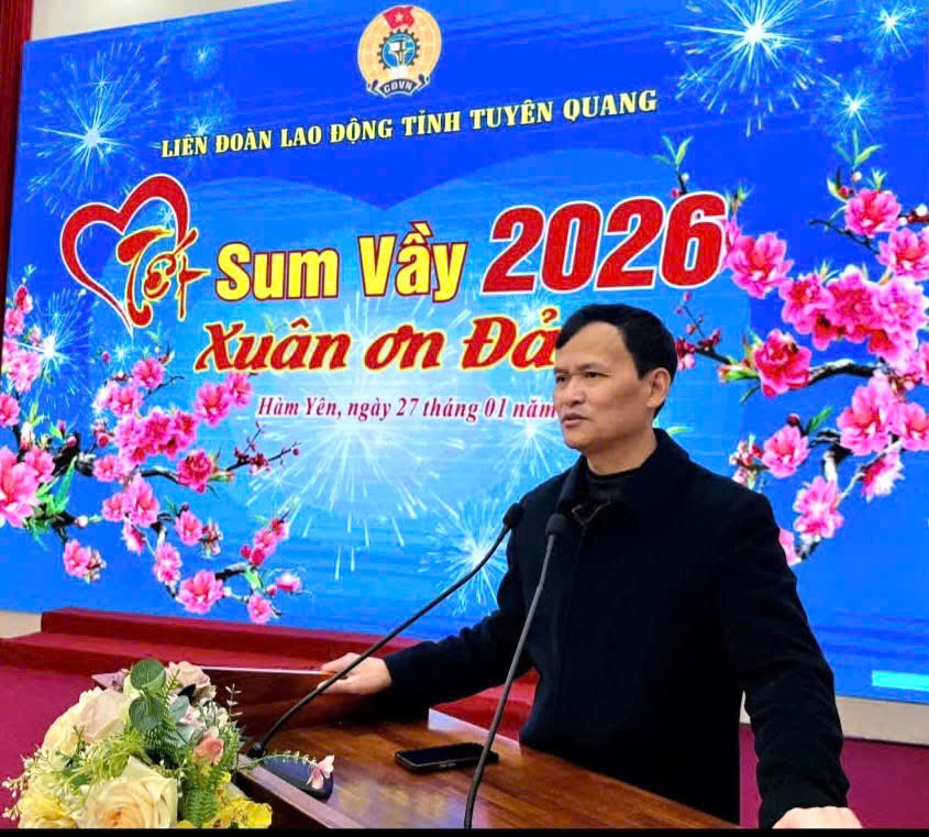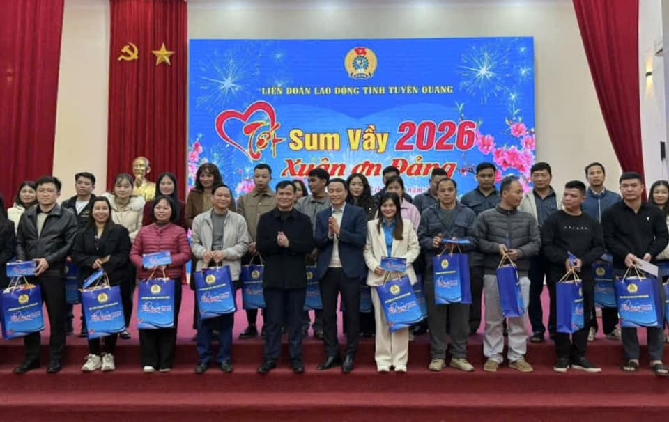 Tiếp tục các hoạt động chăm lo dịp Tết Nguyên đán Bính Ngọ năm 2026, ngày 27/01/2026, tại Công đoàn xã Hàm Yên, Liên đoàn Lao động tỉnh tổ chức Chương trình "Tết sum vầy - Xuân ơn Đảng " năm 2026 cho 200 đoàn viên, người lao động có hoàn cảnh khó khăn tại các Công đoàn cơ sở thuộc Công đoàn xã Hàm Yên.