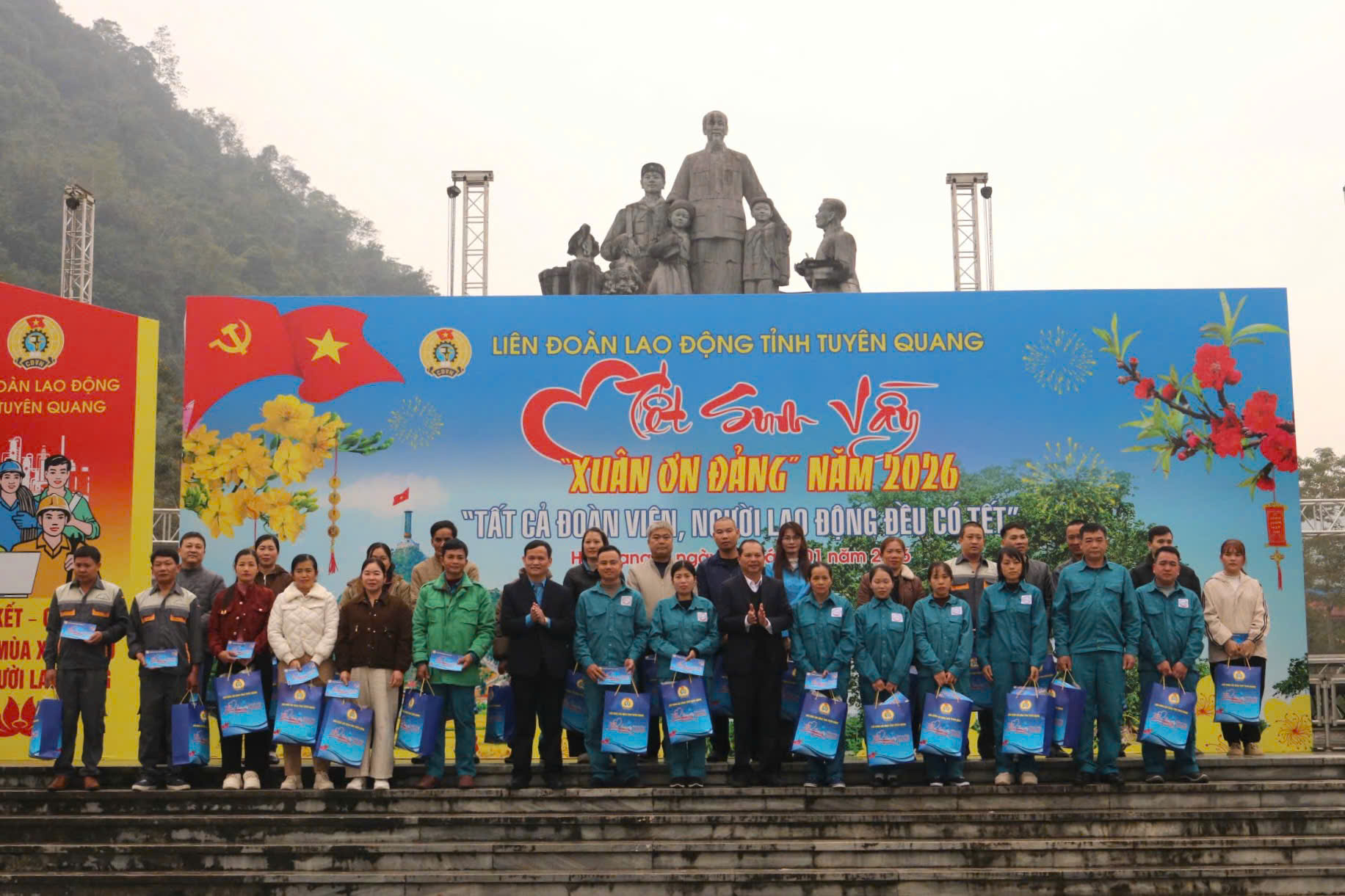 Sáng 30/01/2026, tại Quảng trường 26/3, Liên đoàn Lao động tỉnh tổ chức Chương trình “Tết sum vầy - Xuân ơn Đảng” năm 2026 nhằm chăm lo đời sống vật chất, tinh thần cho đoàn viên, người lao động của các công đoàn cơ sở thuộc Công đoàn phường Hà Giang 1 nhân dịp Tết cổ truyền của dân tộc.