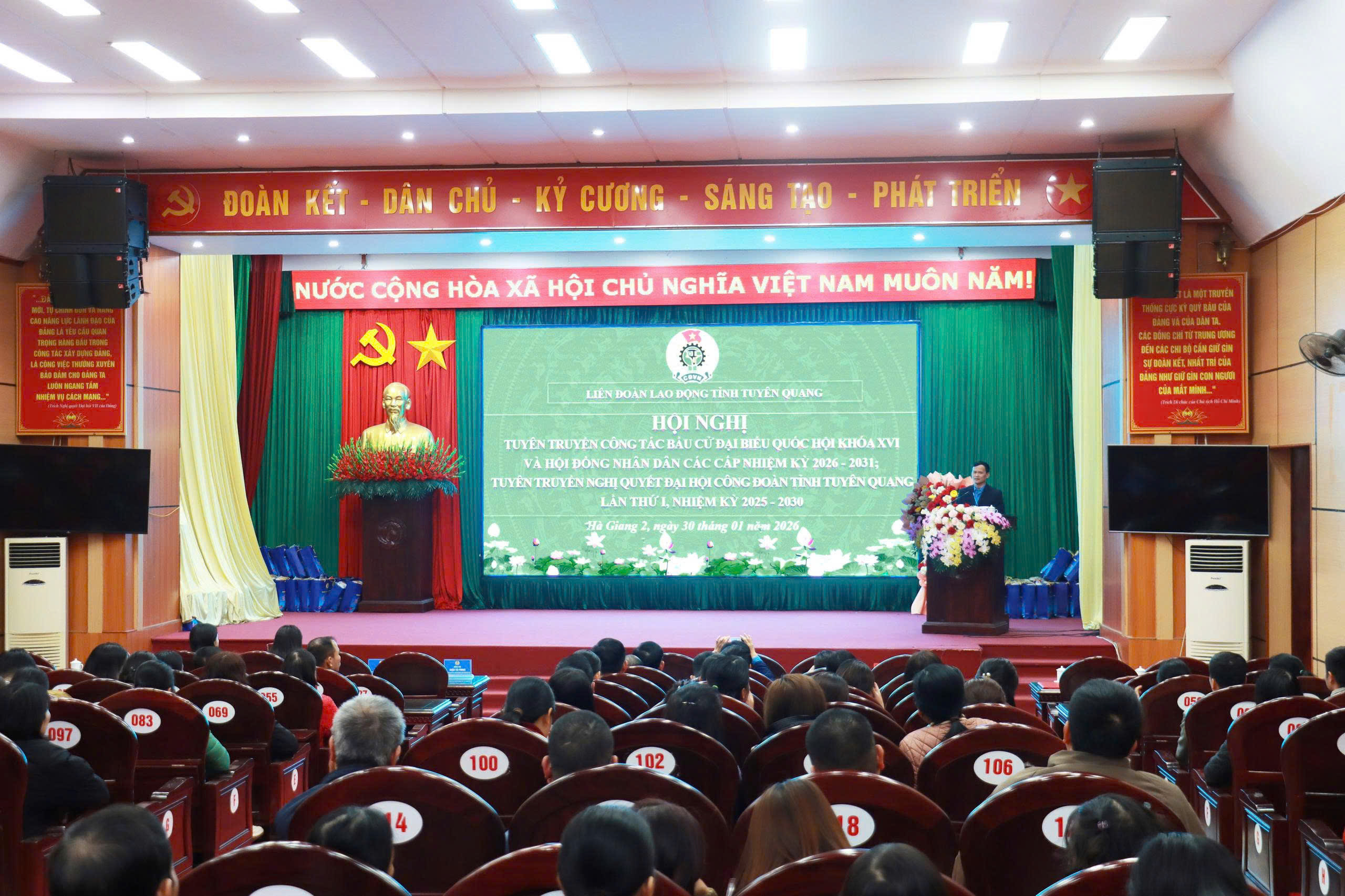 Ngày 30/01/2026, tại Công đoàn phường Hà Giang 2, Liên đoàn Lao động tỉnh tổ chức Hội nghị tuyên truyền công tác bầu cử đại biểu Quốc hội khóa XVI và đại biểu Hội đồng nhân dân các cấp nhiệm kỳ 2026 - 2031; tuyên truyền Nghị quyết Đại hội Công đoàn tỉnh Tuyên Quang lần thứ I, nhiệm kỳ 2025 - 2030