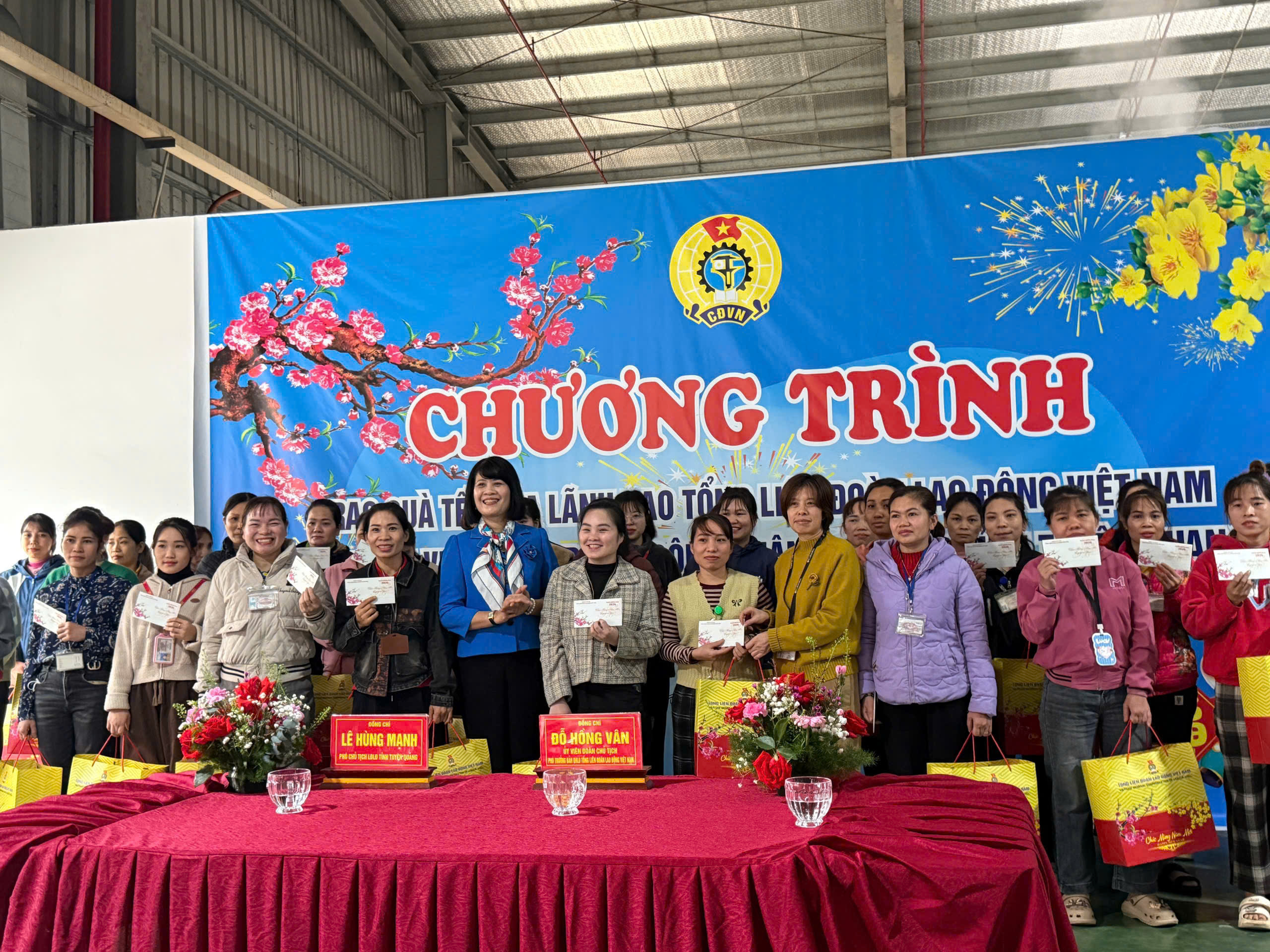 Dự Chương trình có các đồng chí: Đỗ Hồng Vân, Uỷ viên Đoàn Chủ tịch Tổng Liên đoàn, Phó Trưởng Ban Quan hệ Tổng Liên đoàn Lao động Việt Nam; Lê Hùng Mạnh - Phó Chủ tịch Liên đoàn Lao động tỉnh, và đại diện lãnh đạo hai Công ty. Tại chương trình, đồng chí Đỗ Hồng Vân đã phát biểu, bày tỏ và chia sẻ những khó khăn với đoàn viên, người lao động và tổ chức công đoàn trong năm qua, đồng thời động viên công nhân, người lao động và tổ chức công đoàn vượt qua khó khăn để hoàn thành tốt nhiệm vụ; đồng thời chúc tết đoàn viên, người lao động nhân dịp năm mới - Xuân Bính Ngọ, năm 2026.