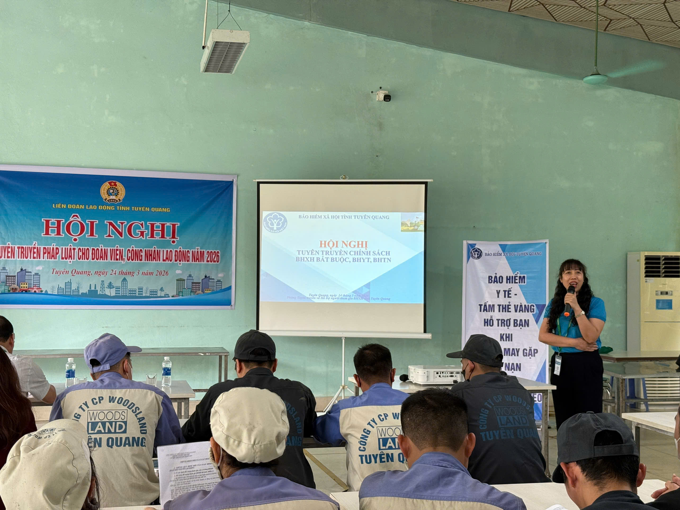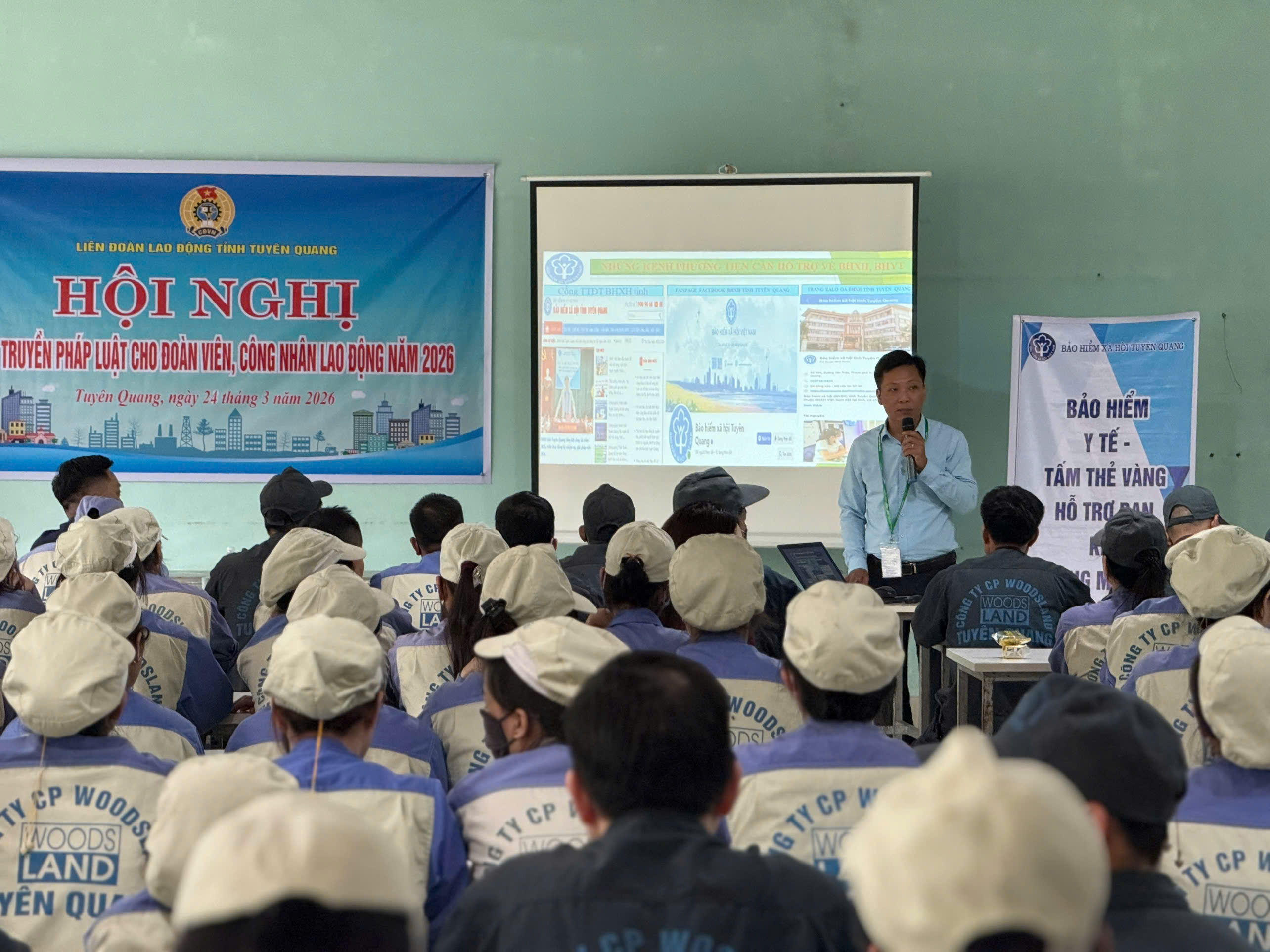 Ngày 24/3/2026, Liên đoàn Lao động tỉnh Tuyên Quang tổ chức hội nghị tuyên truyền pháp luật cho 200 đoàn viên, người lao động của Công ty Cổ phần Woodsland, xã Yên Sơn