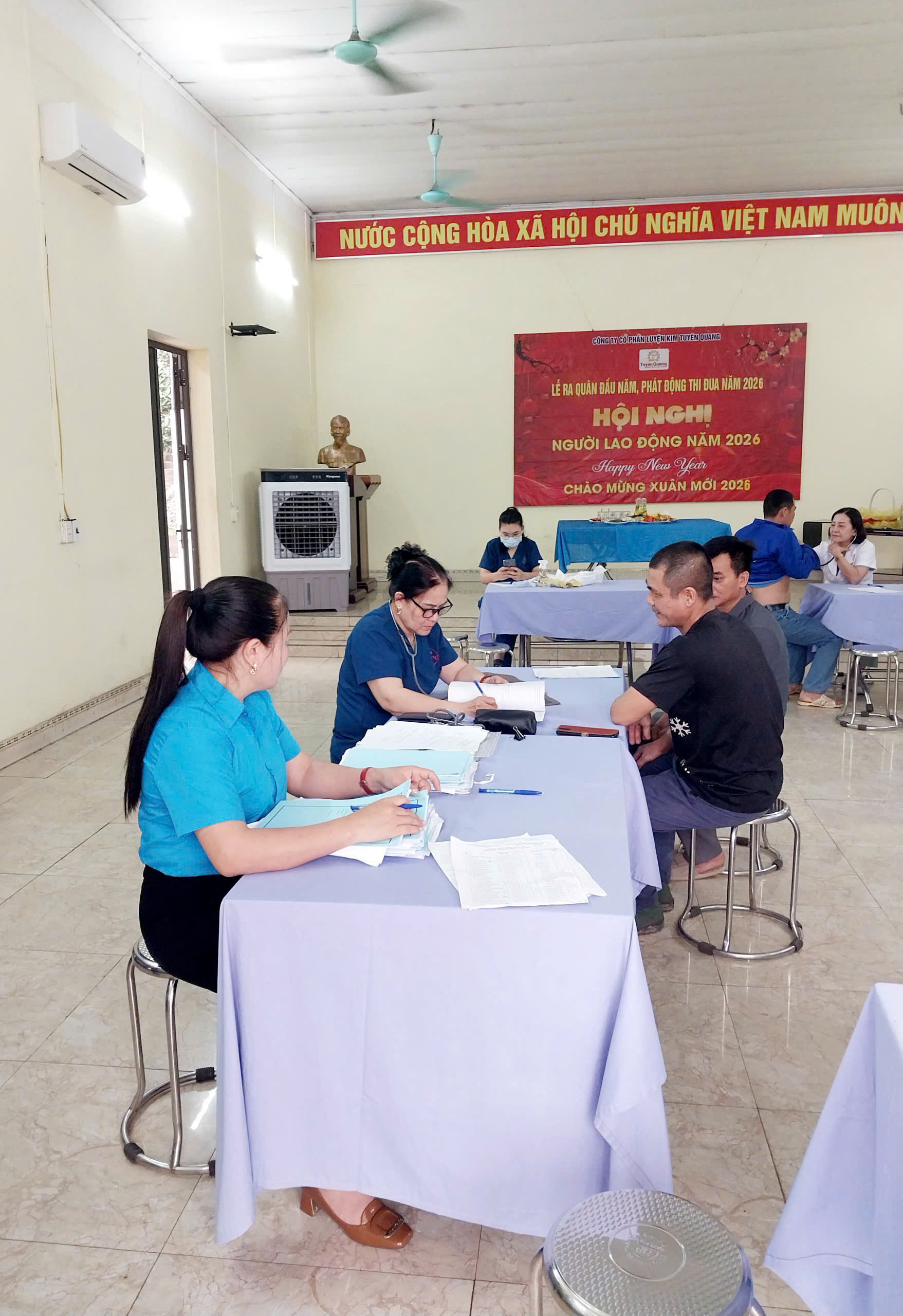 Căn cứ Thông tư số 32/2023/TT-BYT về hướng dẫn khám sức khỏe; căn cứ Thỏa ước lao động tập thể của Công ty Cổ phần Luyện kim Tuyên Quang, ngày 27/3/2026, Ban lãnh đạo Công ty đã phối hợp cùng Công đoàn cơ sở tổ chức chương trình khám sức khỏe định kỳ cho toàn thể 59 đoàn viên, công nhân lao động của Công ty.