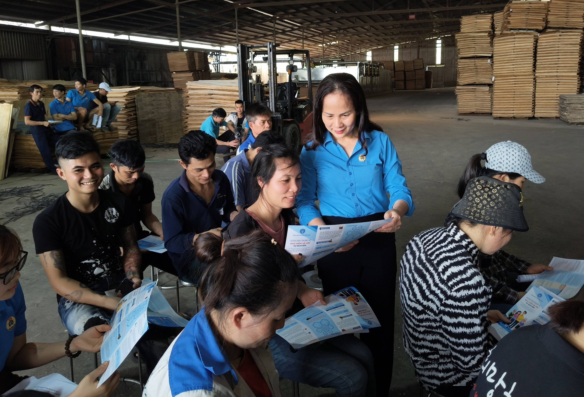 Không khí buổi tuyên truyền diễn ra ngay tại nhà xưởng, nơi làm việc quen thuộc của công nhân, đã tạo sự gần gũi, thiết thực.