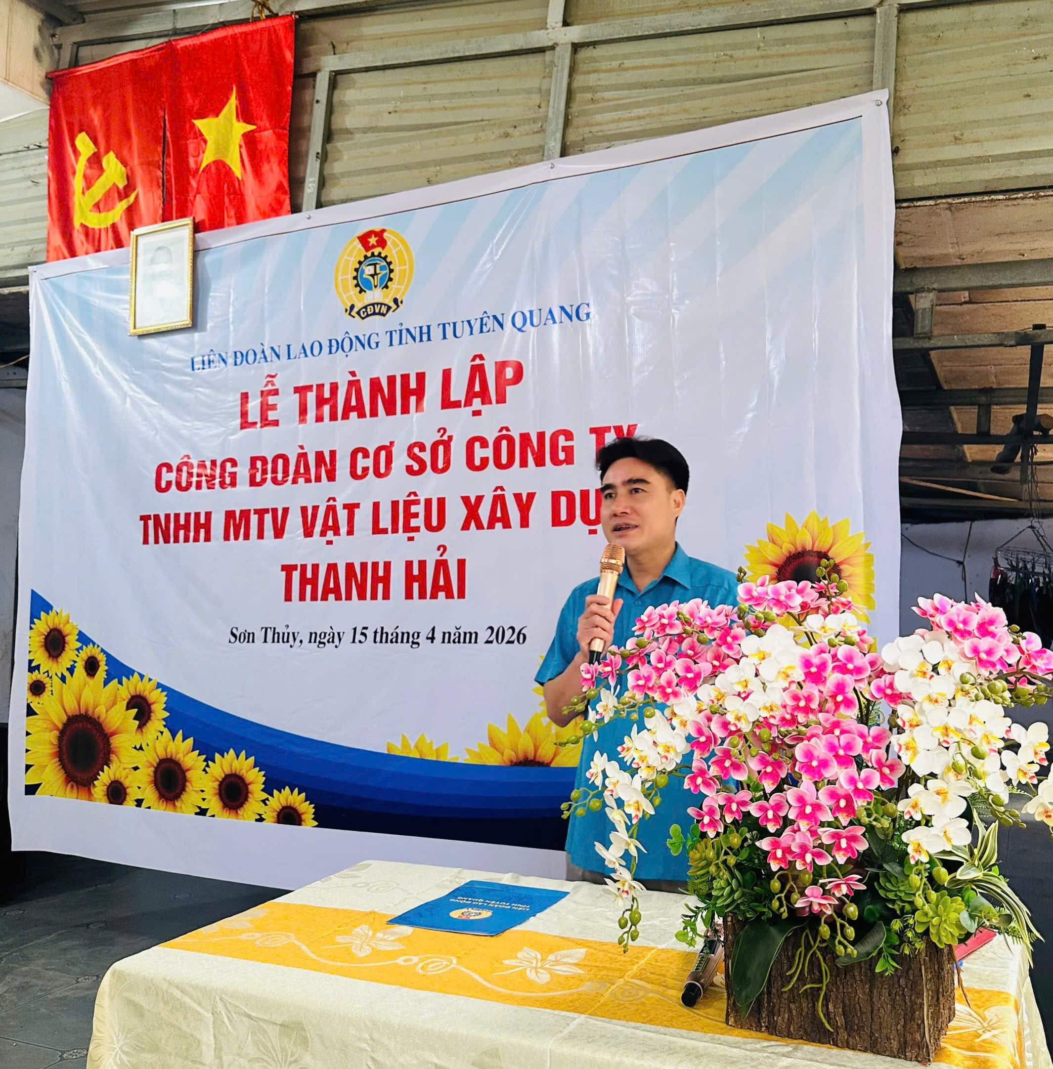 Ngày 15/4/2026, Liên đoàn Lao động tỉnh tổ chức Lễ thành lập Công đoàn cơ sở Công ty TNHH MTV Vật liệu xây dựng Thanh Hải.