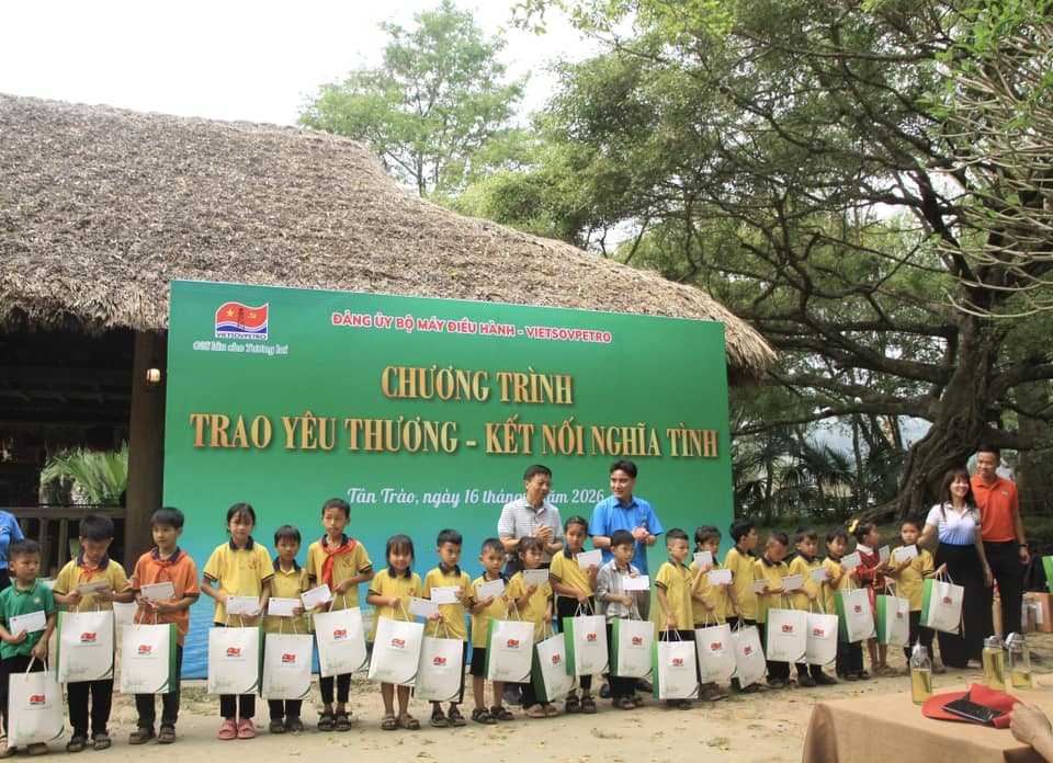 Trong những năm qua, Đảng uỷ và các tổ chức đoàn thể chính trị - xã hội trong Bộ máy điều hành đã tích cực triển khai nhiều chương trình thiết thực, hướng về cộng đồng, đặc biệt tại các địa bàn còn khó khăn. Năm 2026, Liên đoàn Lao động tỉnh Tuyên Quang đã kết nối với lãnh đạo đơn vị để tổ chức các hoạt động ý nghĩa tại quê hương Tân Trào. Tại Chương trình, lãnh đạo của Bộ máy điều hành Liên doanh Việt - Nga Vietsovpetro đã tặng quà cho 80 học sinh có hoàn cảnh khó khăn của 3 trường tiểu học trên địa bàn xã Tân Trào, mỗi suất gồm 500.000 đồng tiền mặt và 1 túi quà. Những phần quà trao tặng các em học sinh là sự sẻ chia, tiếp thêm động lực để các em vượt qua khó khăn, vươn lên học tập tốt, trở thành những công dân có ích cho xã hội.